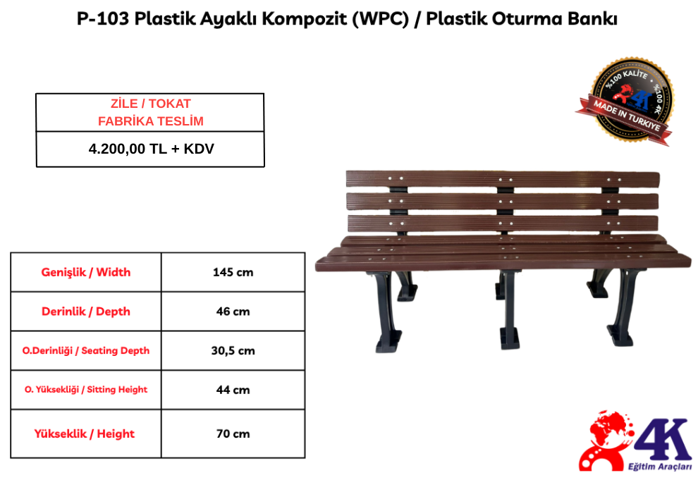 P-103 Plastik Ayaklı Kompozit (WPC) / Plastik Oturma Bankı