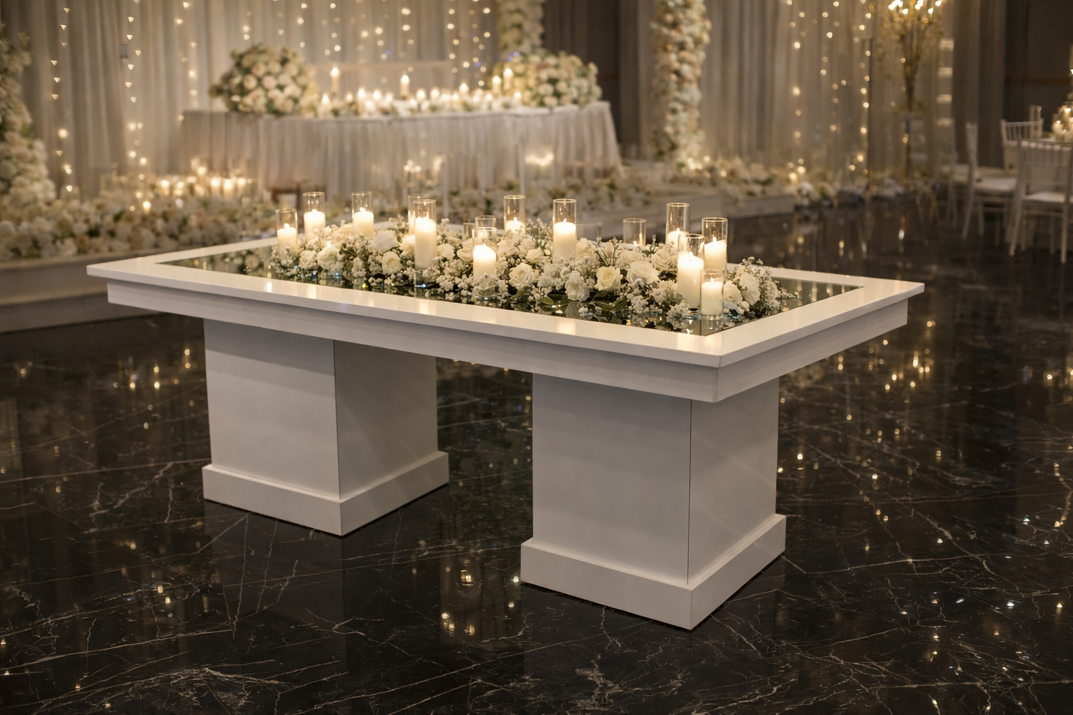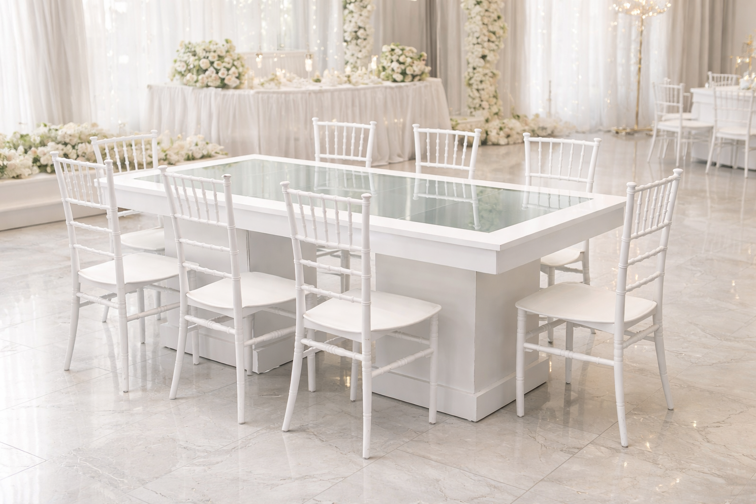 | Beyaz Aynalı Davet Masası | | | Fabrika Teslimi | 100x200 cm | Beyaz | 10.000,00 TL + KDV | | İstoç Teslimi | 100x200 cm