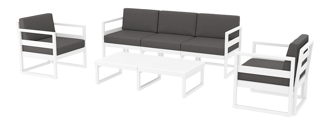 840 Miami Lounge Set | | Beyaz - Koyu Gri - Kahverengi | | Miami İkili Koltuk | Miami Tekli Koltuk | Miami Mini Sehpa | Miami Uzun Sehpa | Miami Minder Seti | | 1 Adet | 2 Adet | 2 Adet | 1 Adet | 1 Adet | MİNİMUM 5 ADET VE ÜZERİ ALIMLARDA GEÇERLİDİR. | |