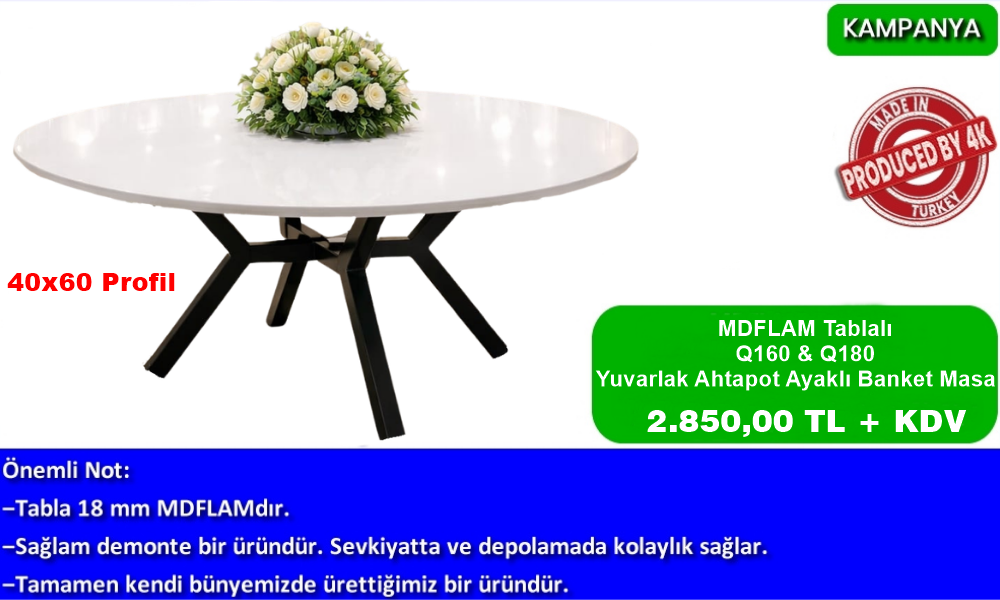 DM-01 YUVARLAK BANKET MASA FİYATLARI